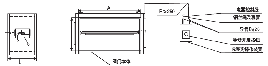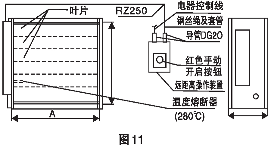 b.排煙閥見簡圖8, 其執行機構由安裝在附近:墻體上的遠距離控制器通過鋼絲紀與閥體相連,常用于安裝高度較高,以克服手動控制不便之處。