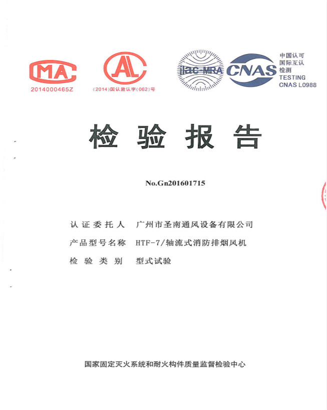 HTF-7 軸流式消防風機檢驗報告